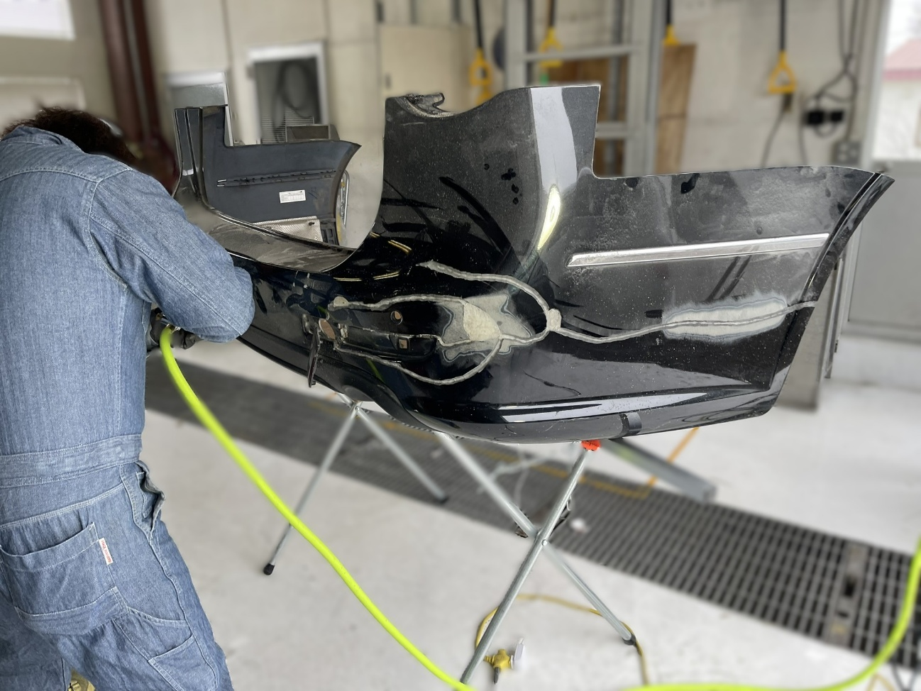 6.技術フォロー POLYVANCE プラスチック溶接機 外車ウレタンバンパーを、お客様と一緒に直しました。